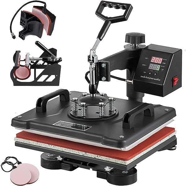 Combo 5 in 1 heat transfer press machine, you can: Transfer colorful pictures and characters of sublimating and dissolved printing ink onto ceramics, glasses and textiles such as cotton, flax, chemical fiber, nylon, etc. Use it to make your own custom T-shirts, caps, ceramic plates, ceramic tiles, mugs, coasters, mouse pads, jigsaw puzzles, lettering, other misc. fabrics & materials.